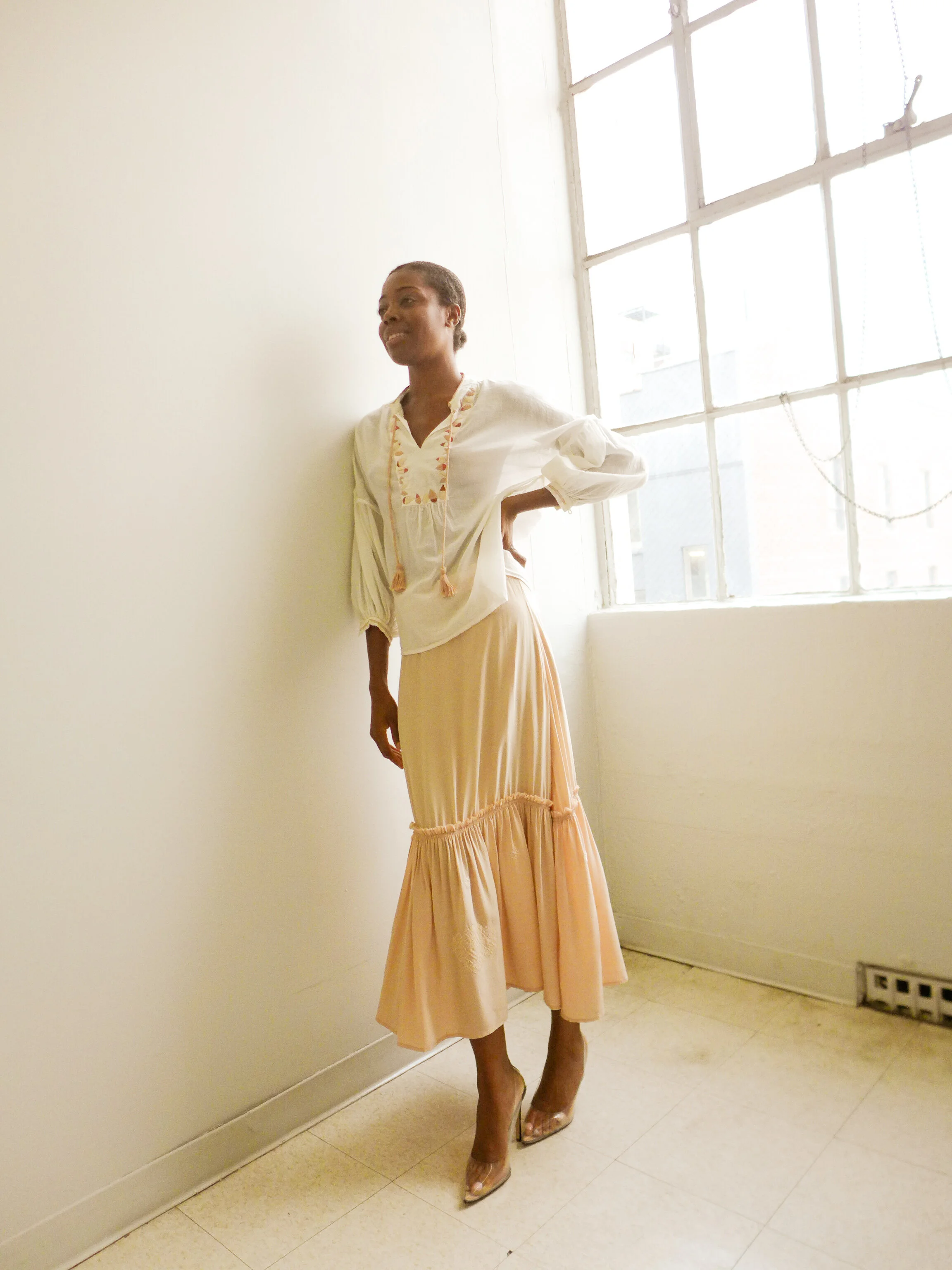 Designed for warm weather days with all natural fabrications including silk crepe, handprinted cotton voile, handwoven brocade, and the softest modal voile. these silhouettes are made to breathe and move: beautiful, easy, and comfortable. Special details like hand embroidery, handmade tassles, and artisan collaborations are featured.